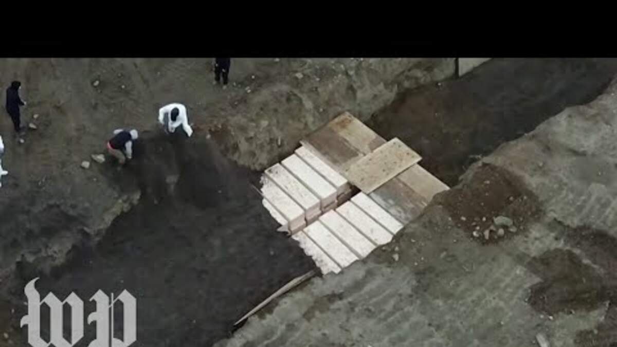 Troubling new video released on Thursday shows workers in protective suits burying stacks of wooden coffins in a mass grave at Hart Island ๐๐พ