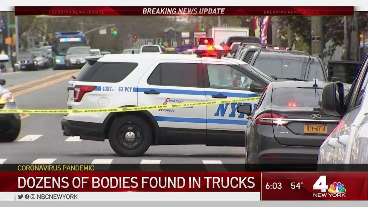 Turns out the funeral home has been keeping dozens dead bodies from Covid-19 in unrefrigerated U-Haul trucks in front of their Flatlands building and were trying to move the bodies to a bigger truck. Police say 15 bodies were moved to a refrigerator truck before officials ordered them to stop.