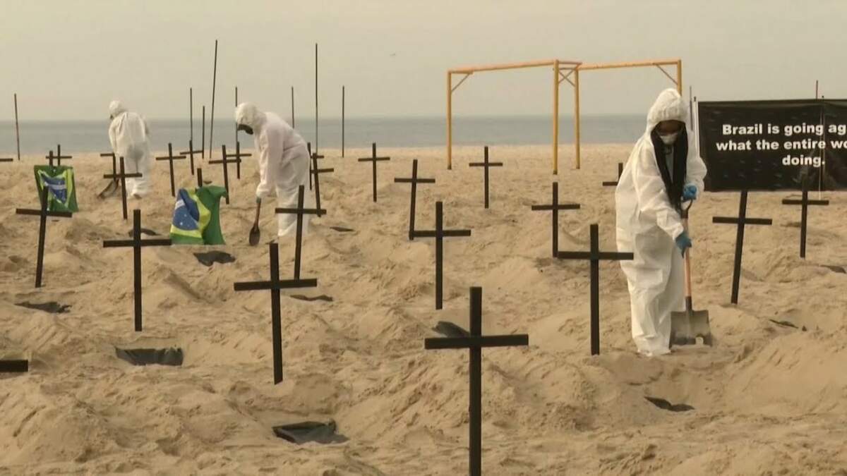 Protesters in Brazil dug 100 graves on one of the country’s most famous beaches: the Copacabana.
