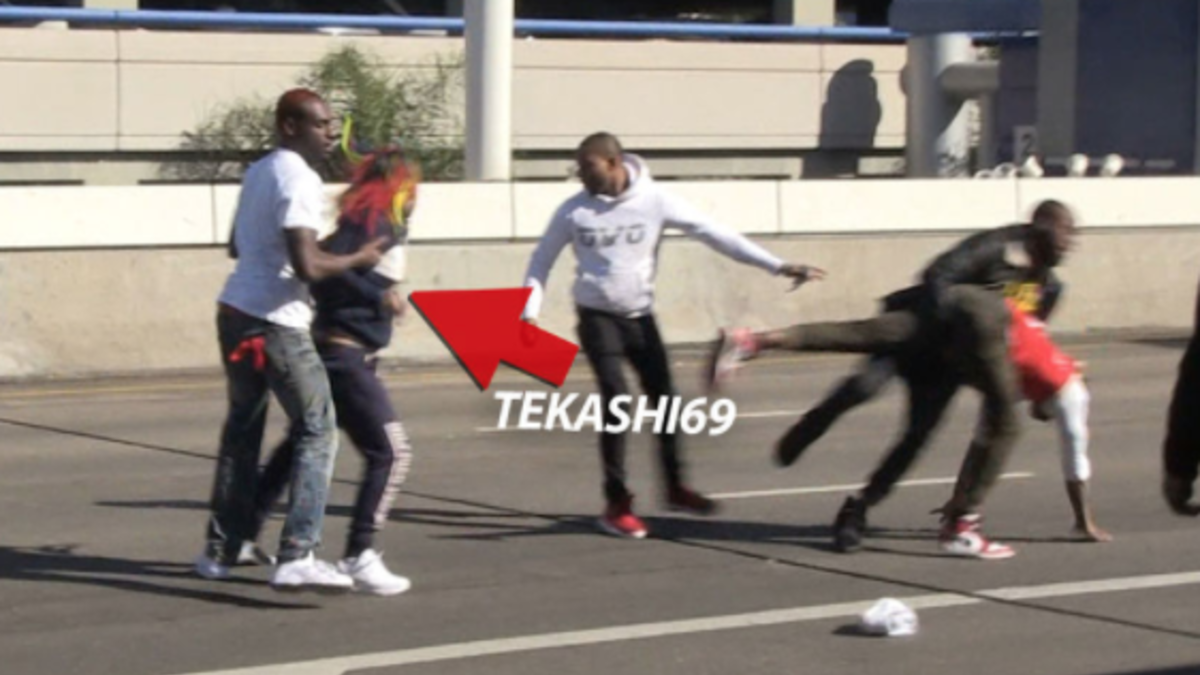 As Tekashi was about to enter the terminal at LAX, a man approaches him, pointing his finger in the rapper's face and yelling at him. The 21-year-old "Gummo" rapper's crew instructed him to walk away and go into the terminal. As he left the scene, the fists started flying.