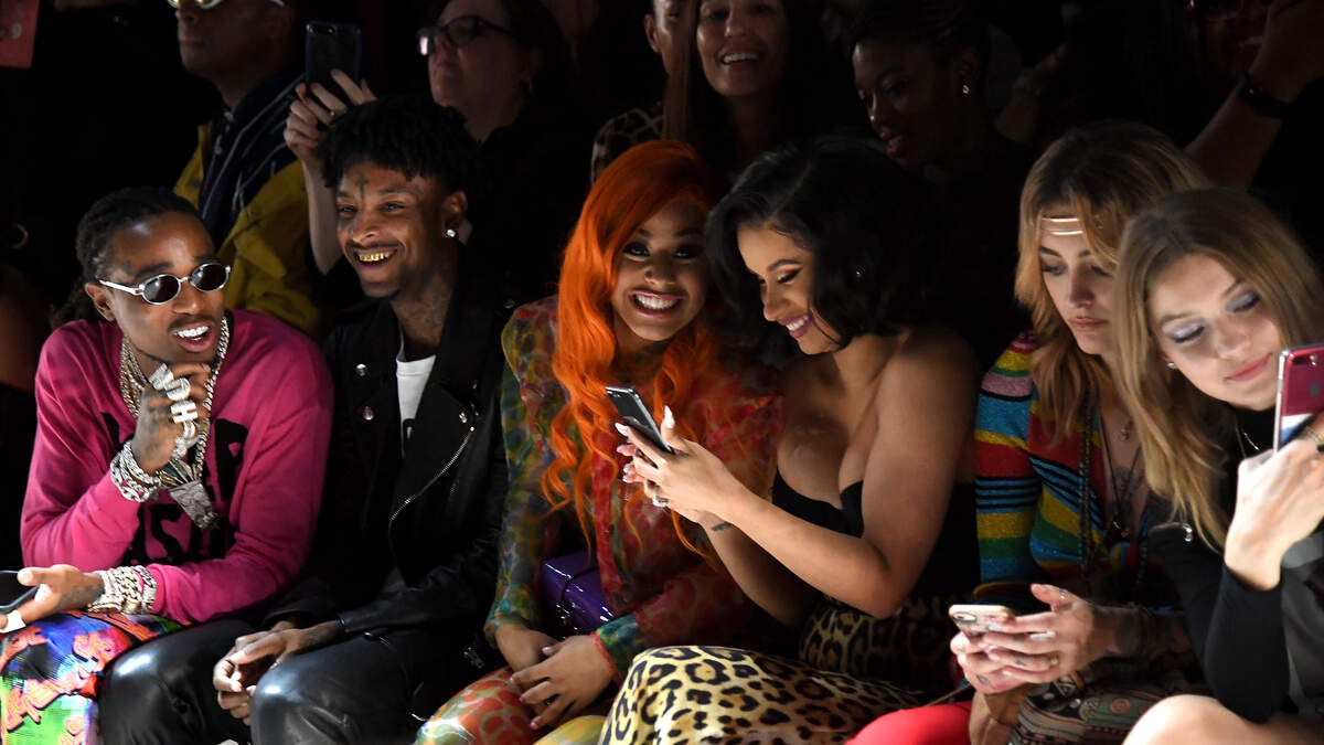 The sisters were sat front row alongside Paris Jackson, 21 Savage and Quavo.