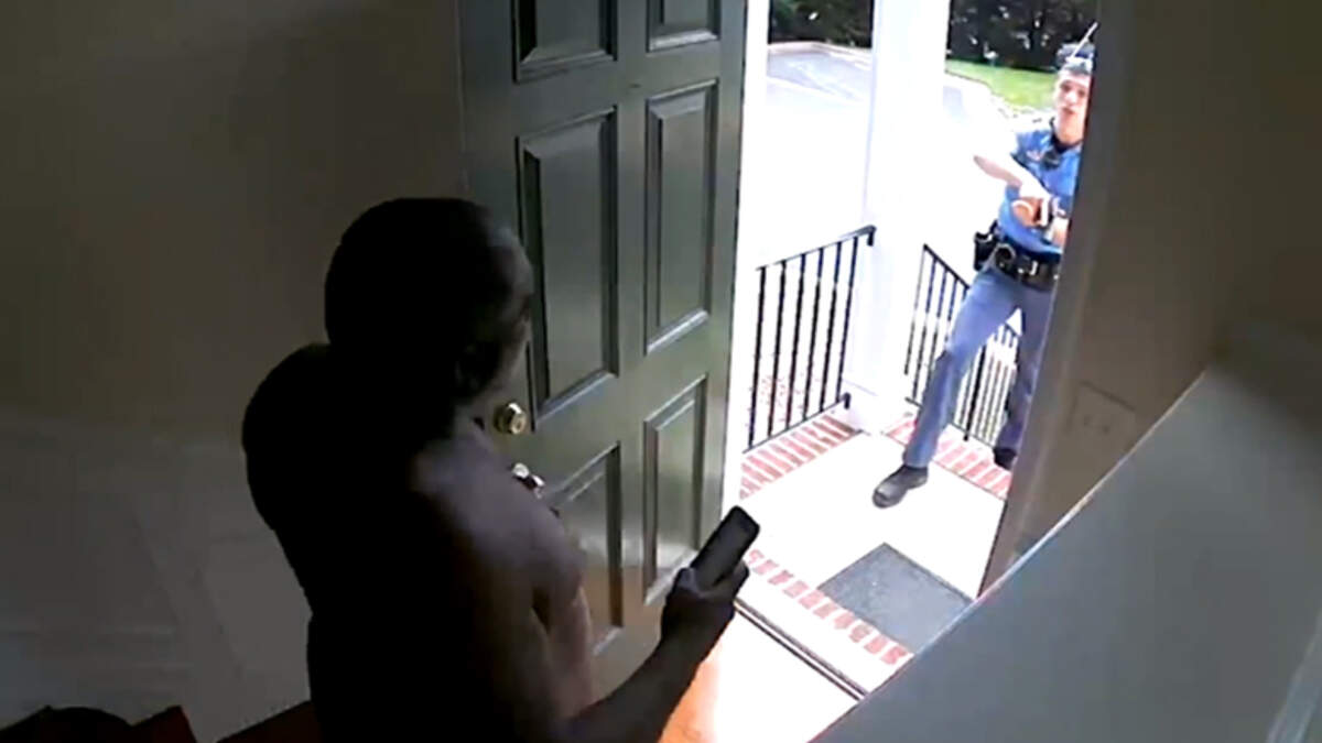 A Raleigh police officer was responding to the burglar alarm and opened his front door, which was unlocked, and yelled: "Police! (If) you're inside, let yourself be known."