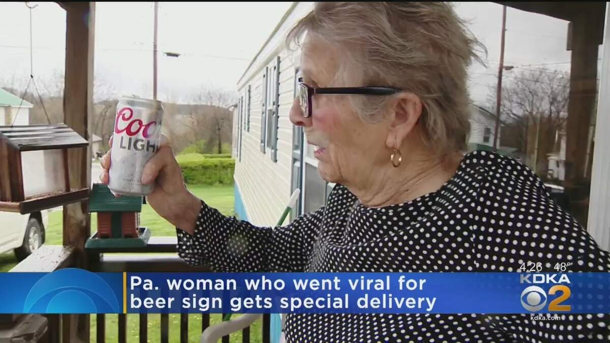 Reps from the beverage giant delivered 10 15-packs of Coors Light to Olive Veronesi’s Seminole home, news station KDKA reports. Olive went viral after she seen in a photo holding a Coors Light in one hand with a sign that reads: "I need more beer" while social distancing in her Seminole, PA home.