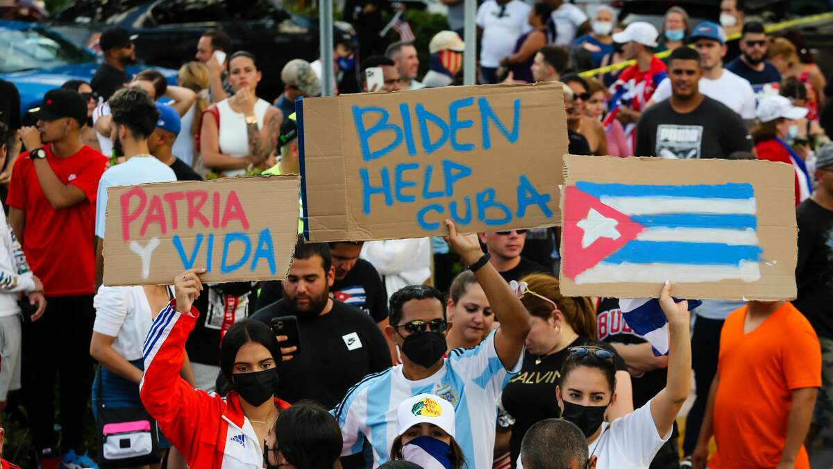 In Miami, hundreds of people gathered in the Little Havana neighborhood in solidarity with the growing protests in Cuba. “I know my family in Cuba is struggling, people are dying. It’s terrible,” Miami resident Christian Guzmán told NBC station WTVJ. “Right now it’s hard. There’s no food, there’s no medicine. The Covid outbreak. The whole country is in the streets,” Darío Suárez said.