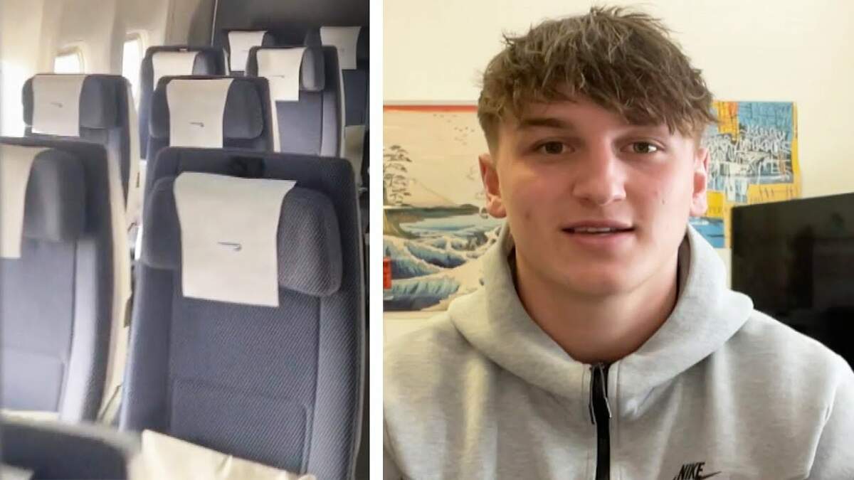 Nineteen-year-old Kai Forsyth was the only passenger on a flight from London, England, to Orlando, Florida. He posted a TikTok video showing off all the empty seats and has gone viral.