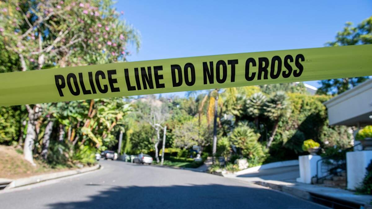 Surveillance footage from a nearby business shows the two suspects get out of a dark SUV. It then shows the victim fighting one of the suspects in the street.