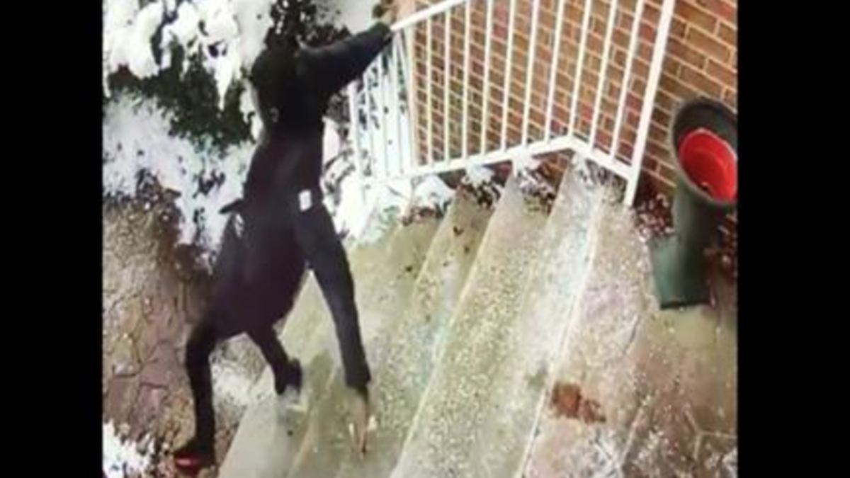 Meek Mill posted a video of himself on the gram coming out of his mom's house where he hit the deck on some ice.