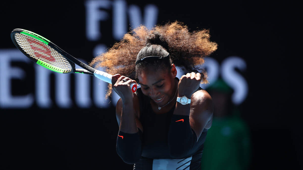 Serena Williams was photographed blowing her new fiancé Alexis Ohanian kiss while getting busy SERVING them balls out in Australia as the Reddit co-founder looked on adoringly at his future wife.