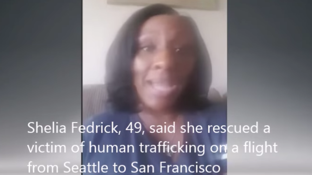 Shelia Fedrick, 49, said she rescued a 15-year-old girl on a flight from Seattle to San Francisco when the Alaska Airlines flight attendant saw the disheveled teen sitting next to a well-dressed man.