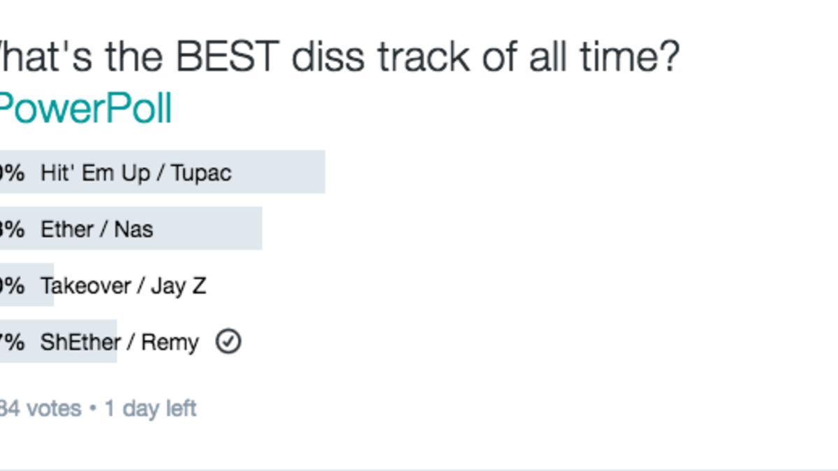 With everything going on right now with Remy Ma and Nicki Minaj, it's only right that we do a "Power Poll" and see who you think has the best diss track of all time.